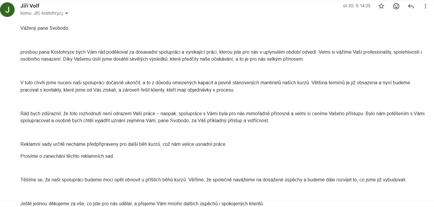 Spolupráci jsme pozastavili kvůli plným kapacitám na školení…