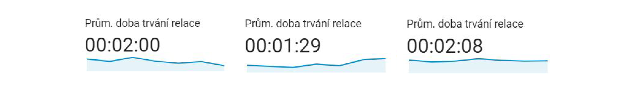 Zkuste se podívat na statistiky používání webů a zjistíte, že průměrná doba strávená na webu se velmi často pohybuje okolo 2 minut. Níže jsou tři náhodně vybrané web. Jeden je B2B, druhý realitní portál, třetí e-shop. Všechny jsou obchodně úspěšné.